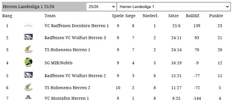 Nächstes Spiel: Dienstag, 3.3.2026, 20:40 Uhr, Wolfurt Hofsteighalle gegen VC Wolfurt 3
